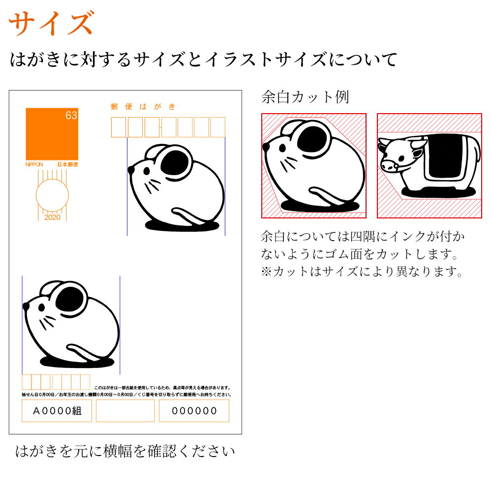 特徴 年賀状にポンと押せる干支ゴム印。